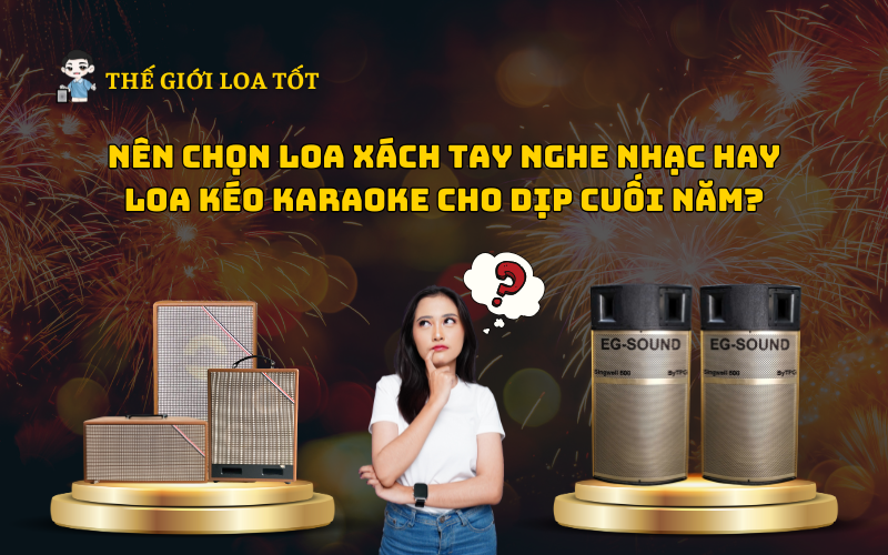 Khi dịp cuối năm và Tết Nguyên Đán sắp đến gần, không ít người tiêu dùng băn khoăn khi lựa chọn thiết bị âm thanh cho các buổi tiệc tất niên, họp mặt gia đình và những khoảnh khắc đáng nhớ bên người thân. Trong đó, câu hỏi thường gặp nhất là "Nên chọn Loa Xách Tay Nghe Nhạc hay Loa Kéo Karaoke?" để phục vụ tốt nhất cho nhu cầu giải trí dịp Tết. Với sự đa dạng của các loại loa trên thị trường hiện nay, việc chọn mua loại loa phù hợp không chỉ đáp ứng mục đích sử dụng mà còn tối ưu chi phí. Thế Giới Loa Tốt sẽ cùng bạn khám phá những ưu và nhược điểm của hai loại loa này, giúp bạn đưa ra sự lựa chọn hoàn hảo nhất cho dịp lễ cuối năm.